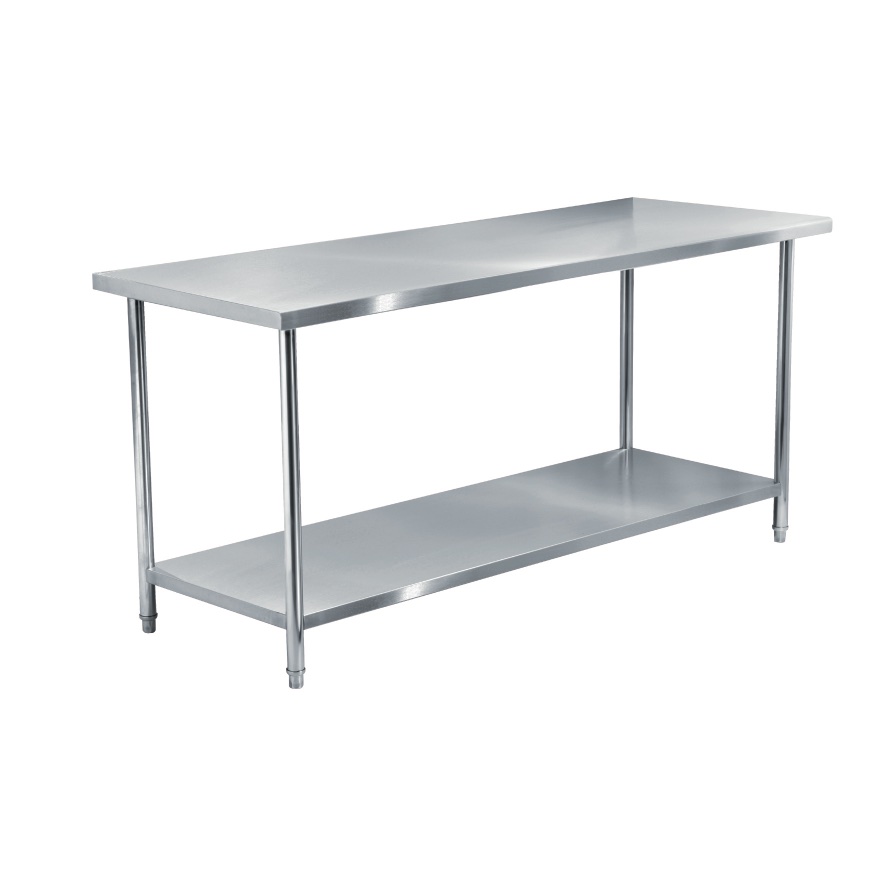 Table inox 200cm (neuve) av. étagère robuste