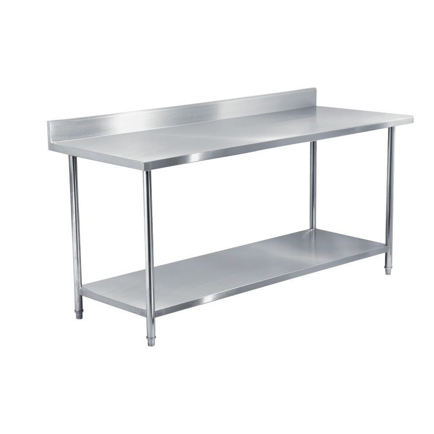 Table inox 200cm (neuve) av. étagère robuste / dosseret